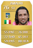 Amauri has born in Brazil but it was in Italy where he has played his all life. He represented Italy at international level after acquiring Italian citizenship. He is not a great choice for your attack except if you love to throw the ball to the head.