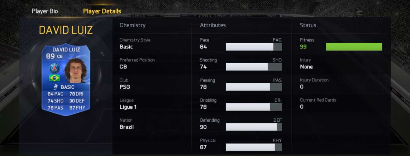 David Luiz – Brazil – Paris Saint-Germain (Ligue 1)